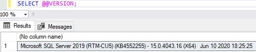 Opening SSMS on one of my local test environments and running the script below, we see that we’re currently at SQL Server 2019 CU5: