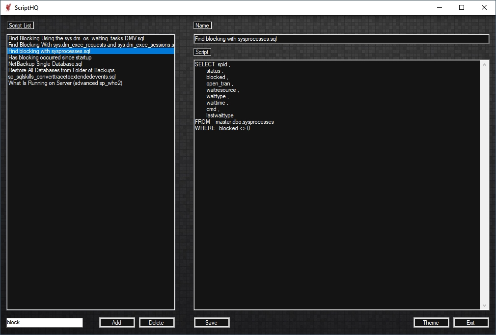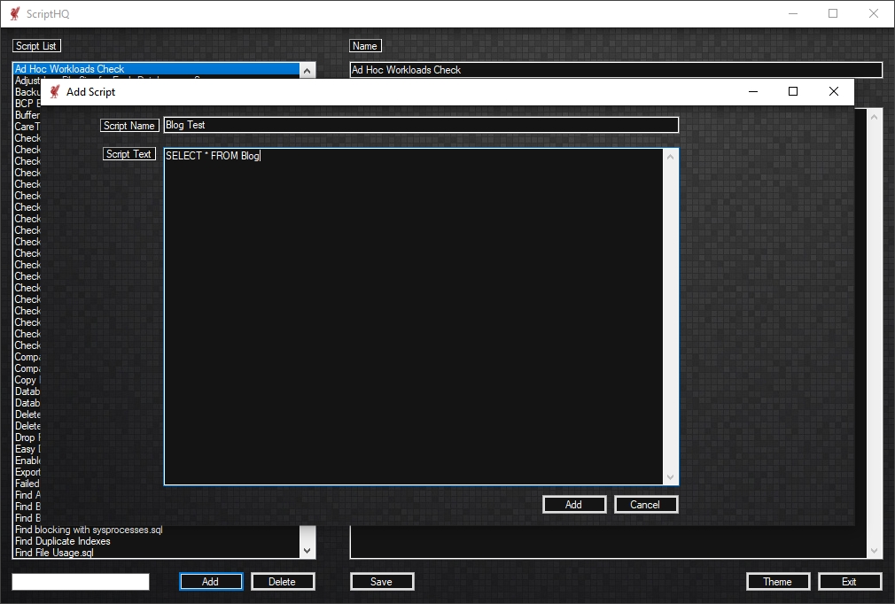 To make life easier, I created an application for our team to search, add, or update scripts called ScriptHQ. Not the fanciest name but it works.