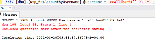 We see @Username for both SELECT statements which is what we want. Did any changes get made?