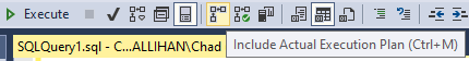 We can tell SSMS to include the actual execution plan by selecting this button: