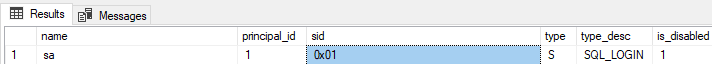 If you’re not using the sa login and you are able to disable it, you may also want to change the name. This may sound a bit risky but SQL Server will always know which login is sa and so can you based on the 0x01 sid value that we can see in sql_logins: