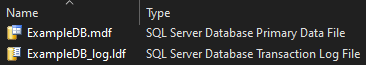 Now, we can select our ExampleDB_log.ldf file in windows explorer and delete it. Only the mdf remains.