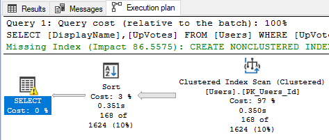 Looking at the execution plan, we see the PK_Users_ID clustered index is scanned to get our results. Someone thought they could do better, so they created an index to try improving the query: