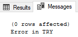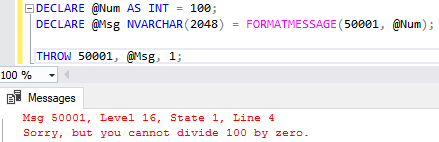 Now, let’s test out our THROW by passing the message and using FORMATMESSAGE: