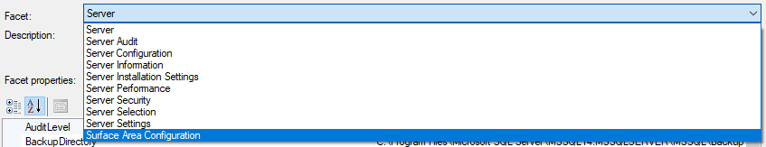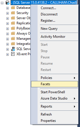 Or you can enable in the SSMS GUI. In SSMS, right click your server connection and select Facets: