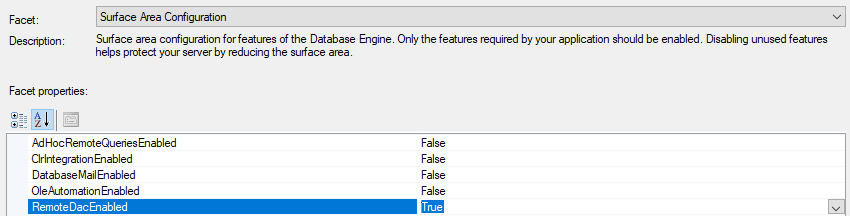 Facet properties will include RemoteDacEnabled to set as True/False: