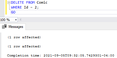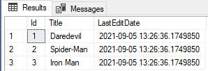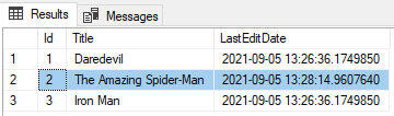 If we check our Comic table, we’ll see the title change from our UPDATE statement as well as an updated LastEditDate value tracking when that title change was made: