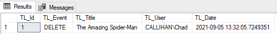 The TR_Comic_Del trigger will fire and we can see a new row added to TitleLog: