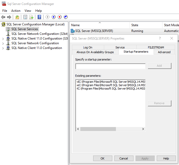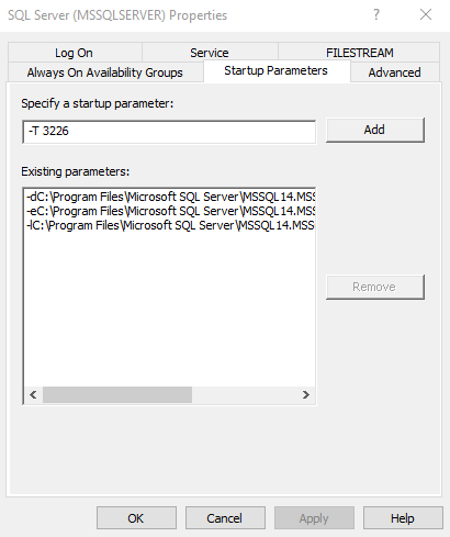 We’ll type “-T 3226” and click Add before clicking OK and closing out of SQL Server Configuration Manager.
