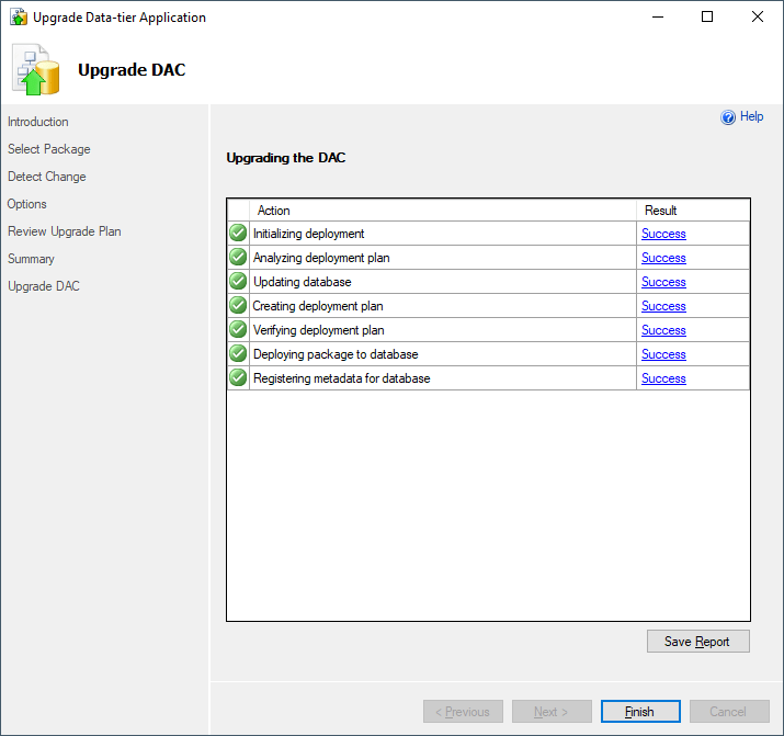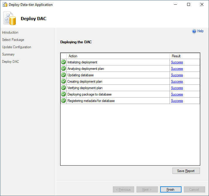 To deploy our DACPAC, we’ll click Next one more time. If all goes well, our deployment will complete successfully.