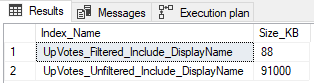 Comparing the index with and without the filter, we see a significant size difference: