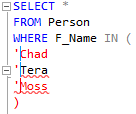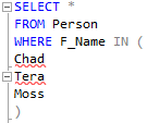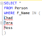 Let’s say we are searching a table for specific names and a list of names is given to us to paste into our query:
