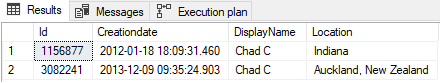 If we run the query below we can confirm there are multiple ‘Chad C’ records in the Users table: