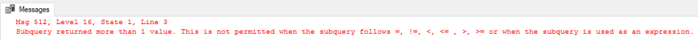 Subquery returned more than 1 value. This is not permitted when the subquery follows =, !=, <, <= , >, >= or when the subquery is used as an expression.