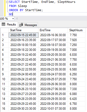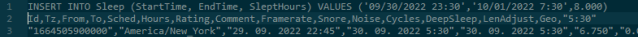 I’m not concerned with options like snoring and rating my sleep. Let’s say I just want to insert the dates and total hours into a table in SQL Server. There are plenty of ways to do so, but in this case we’re going to build our INSERT scripts in Notepad++ with the use of a macro.