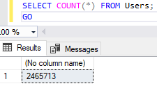 We’ll use a copy of the StackOverflow2013 database for this example. Let’s start with gathering the count of the Users table: