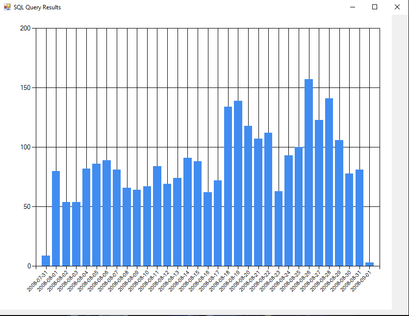 what if i want the same type of chart for this query: SELECT COUNT(*) AS ‘Count’, CAST(CreationDate AS date) AS ‘Date’ FROM Users WHERE CreationDate <= ‘2008-01-01’ GROUP BY CAST(CreationDate AS date) ORDER BY COUNT(*) DESC